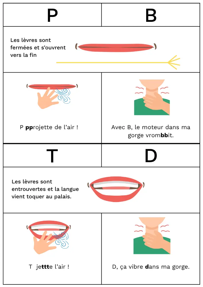 - 6 fiches mnémotechniques pour bien ressentir la différence entre les consonnes