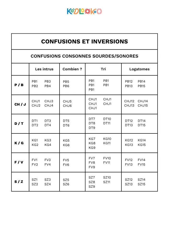 Quand un enfant confond des sons proches, comme [p] et [b], [t] et [d], on utilise parfois des logatomes, c’est-à-dire des petits mots inventés qui n’ont aucun sens (patu, bilo, feti…).
