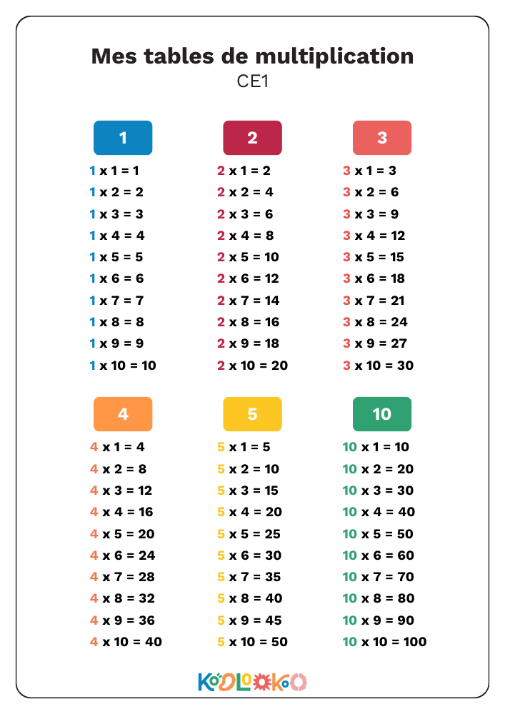 Les tables de 1 à 10 (à partir du CE2)