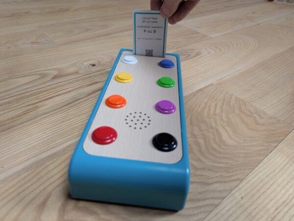 Tu poses le dispositif sur la table, tu choisis une carte, et ton enfant peut commencer.