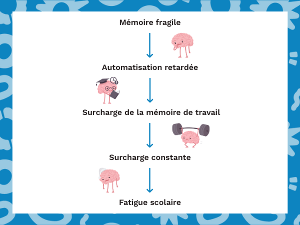 Résultat : la lecture, le calcul ou l’écriture s’automatisent plus lentement, et chaque tâche devient plus coûteuse en énergie.